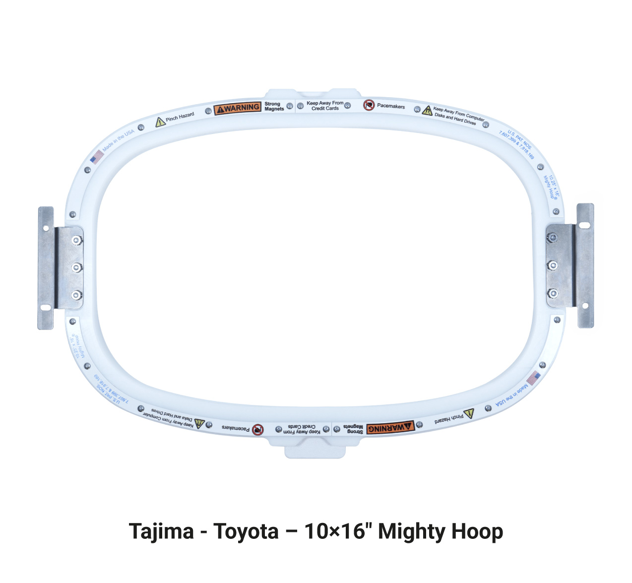 For Tajima, Toyota, Barudan, Butterfly, SWF, ZSK, Melco and Brother.The inside dimension of this hoop is 10″ x 16″ (254mm x 406mm ) Actual sewing area depends on brand of machine approximately 9 1/4″ x 15 1/4″ or (235mm x 387mm)