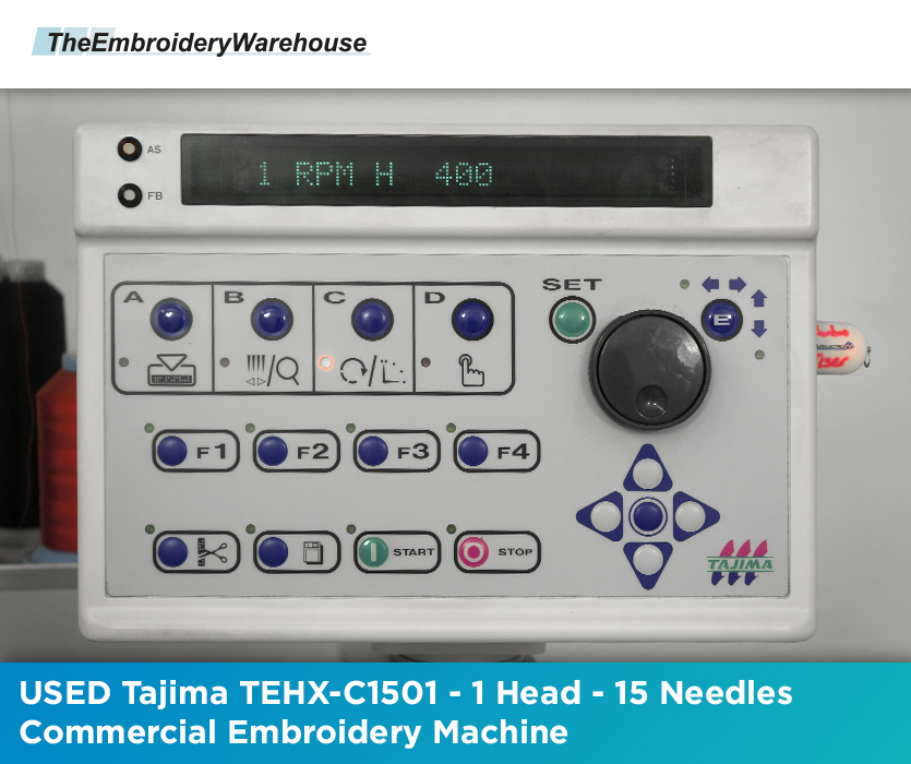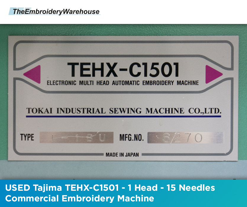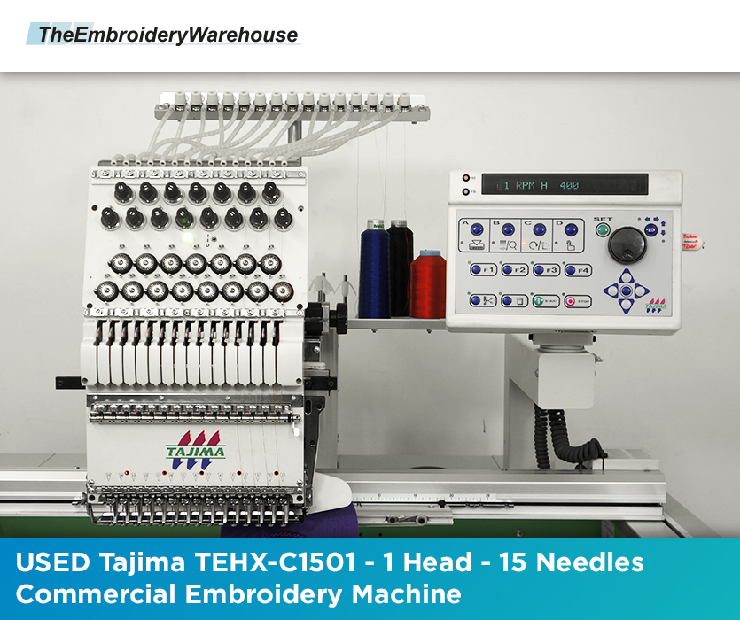 USED Tajima TEHX-C1501 - 1 Head - 15 Needles - Commercial Embroidery Machine